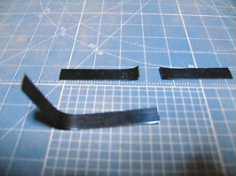 画面向かって右の写真は、レバーを押し上げるのに使われている、ゼンマイと同じ金属を使用していました。反発力は、押しバネ以上で、レバーを押し上げる力を持っています。