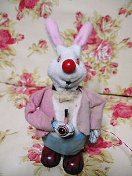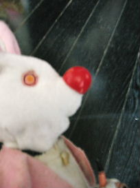 スモーキングラビットの鼻の形状、色等、いろいろ調べても判らなかったのですが、ある本で、箱絵を見る事が出来、丸型の赤鼻である事が判りました。