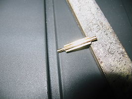 歯車を修正するのは、強度の問題もあるし、無理なので、保管していた、棒軸歯車を代用します。長さは良いのですが、歯車の部分が長いので、歯車の部分だけの長さを、ゆっくり、金ヤスリで削っていきます。