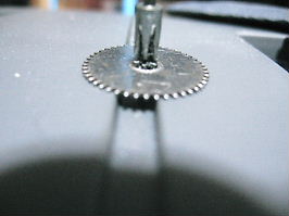 円状の歯車が付いたら、歯車に負担が掛からないように、グリスを付けます。グリスを付けたら、棒軸歯車と噛み合っていた、歯車の刃先も尖っているので、金ヤスリで、少し丸くしておくと良いでしょう。ただし、削りすぎると、噛み合わなくなるので、削り過ぎないようにしてください。