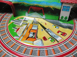 単2電池1本で、線路の上を走ります。最初に、自然の多い土地の所を、外側から、トンネルを通って、内側へ走り抜け、また、トンネルを潜ると、次は、内側から、未来都市へ行き、また、トンネルを潜って、次は、外側のレールへ出て、未来都市を走り、駅へと向かいます。