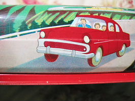 家族で、車乗って、お出掛けしているのも確認出来ます。全体的に、非常に楽しめる、オールブリキの玩具となっています。