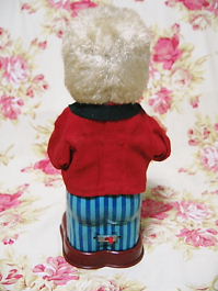 水色のしまのズボンに、赤い上着、赤いしまのシャツに赤いネクタイと派手な感じですが、良く似合っていて、違和感がさほど無いのが、すごいです。