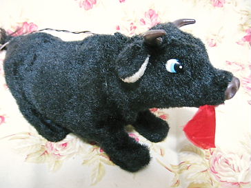 闘牛の玩具ですが、牛は、凶暴どころか、表情が可愛く、動きも面白い玩具です。
